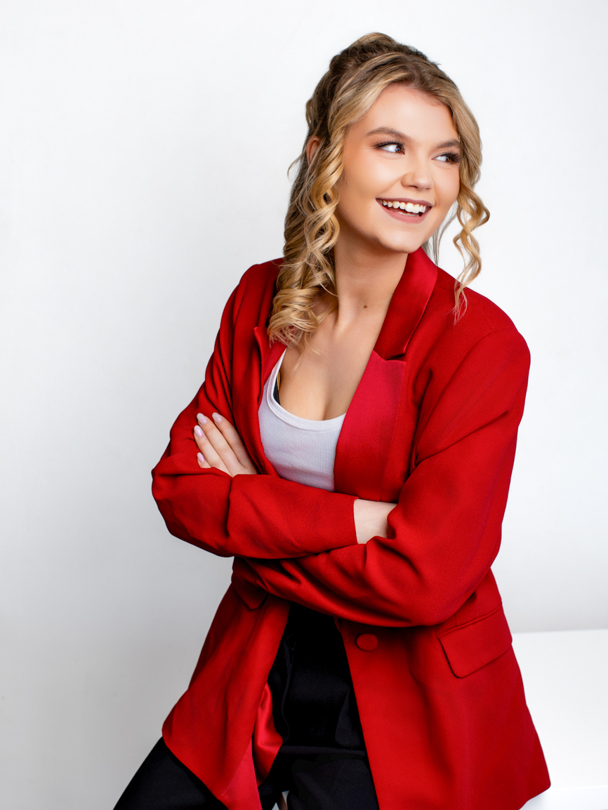 I encourage movement, laughter, and lively posing. You lean forward with intention, flip your hair, toss a jacket over your shoulder, or strike a sassy power pose. These actions create portraits filled with energy, personality, and presence.